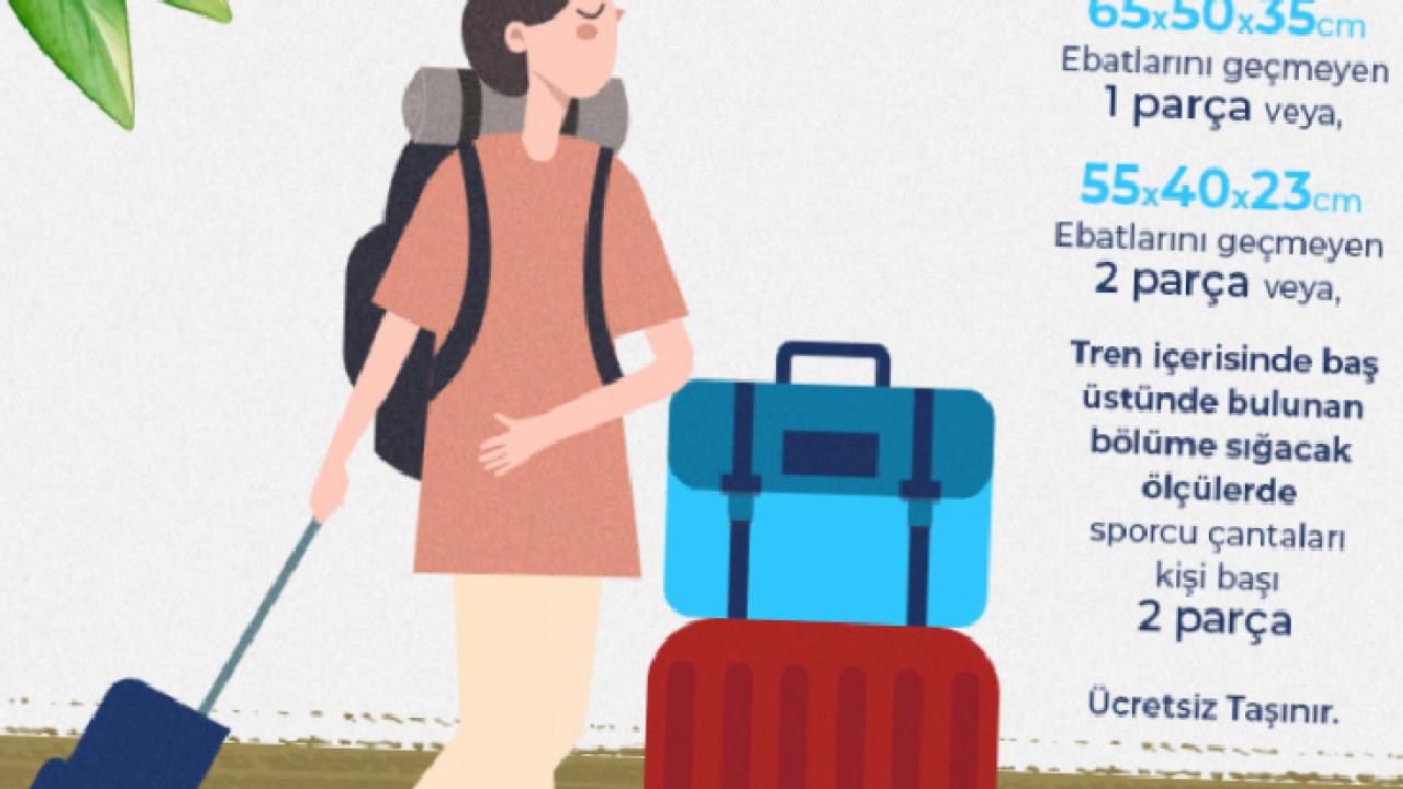 ANKARA () - TCDD Taşımacılık A.Ş., trenlerde yolcu yanında taşınabilecek küçük el bagajı (kabin bagajı) kurallarını kamuoyuyla paylaştı. Açıklamaya göre, geçerli bileti bulunan yolcular, belirlenen ölçü ve ağırlık sınırları dahilinde bagajlarını ücretsiz olarak taşıyabilecek.