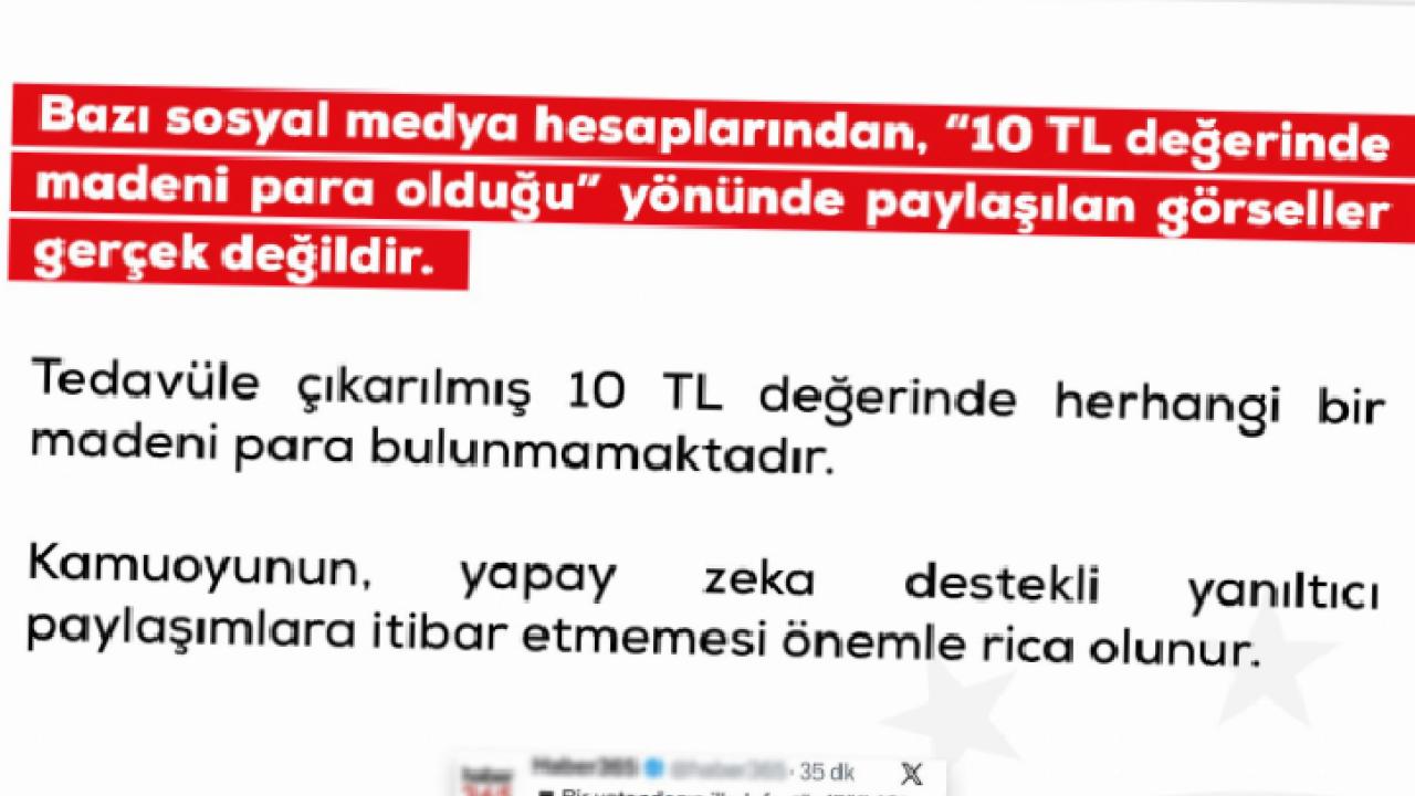 DMM’den yapılan açıklamada, söz konusu görsellerin gerçeği yansıtmadığı belirtilerek, tedavüle çıkarılmış 10 TL değerinde herhangi bir madeni para bulunmadığı vurgulandı.