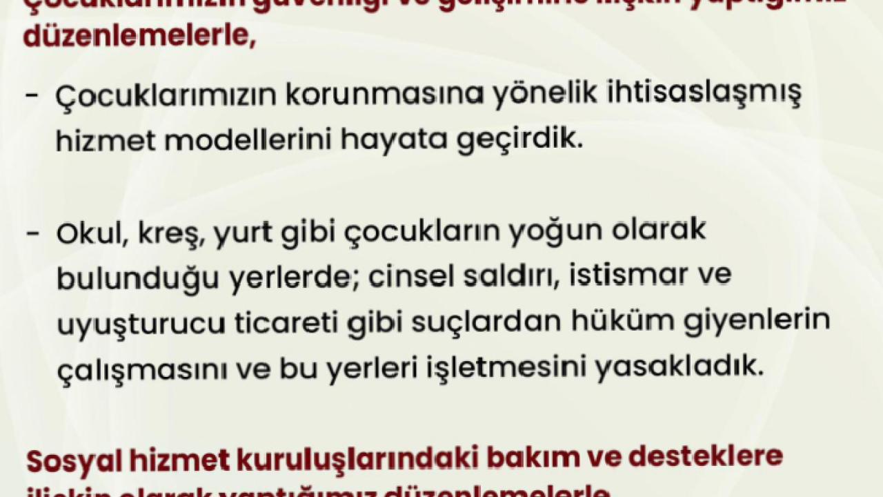 Bakanlık, söz konusu yapılan düzenlemelerin aileyi güçlendirmeyi, çocukların güvenliğini artırmayı ve sosyal devlet anlayışını pekiştirmeyi amaçladığını vurguladı.