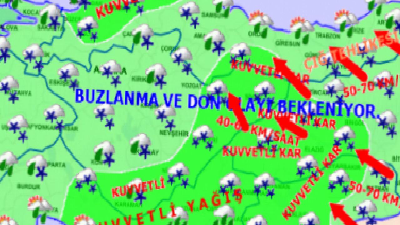 Yağışların, Doğu Akdeniz, Batı Karadeniz, Doğu Anadolu'nun güney ve batısı, Güneydoğu Anadolu ile İstanbul, Bursa, Yalova, Kocaeli, Karaman, Kayseri, Niğde, Sivas ve Tokat çevreleri ile Aydın'ın ve Muğla'nın kıyı kesimleri, Antalya'nın doğusu, Mersin'in batı kesimleri, Konya'nın güney kesimlerinde kuvvetli olacağı tahmin ediliyor. Kuzey, iç ve doğu kesimlerinde buzlanma ve don olayı bekleniyor.