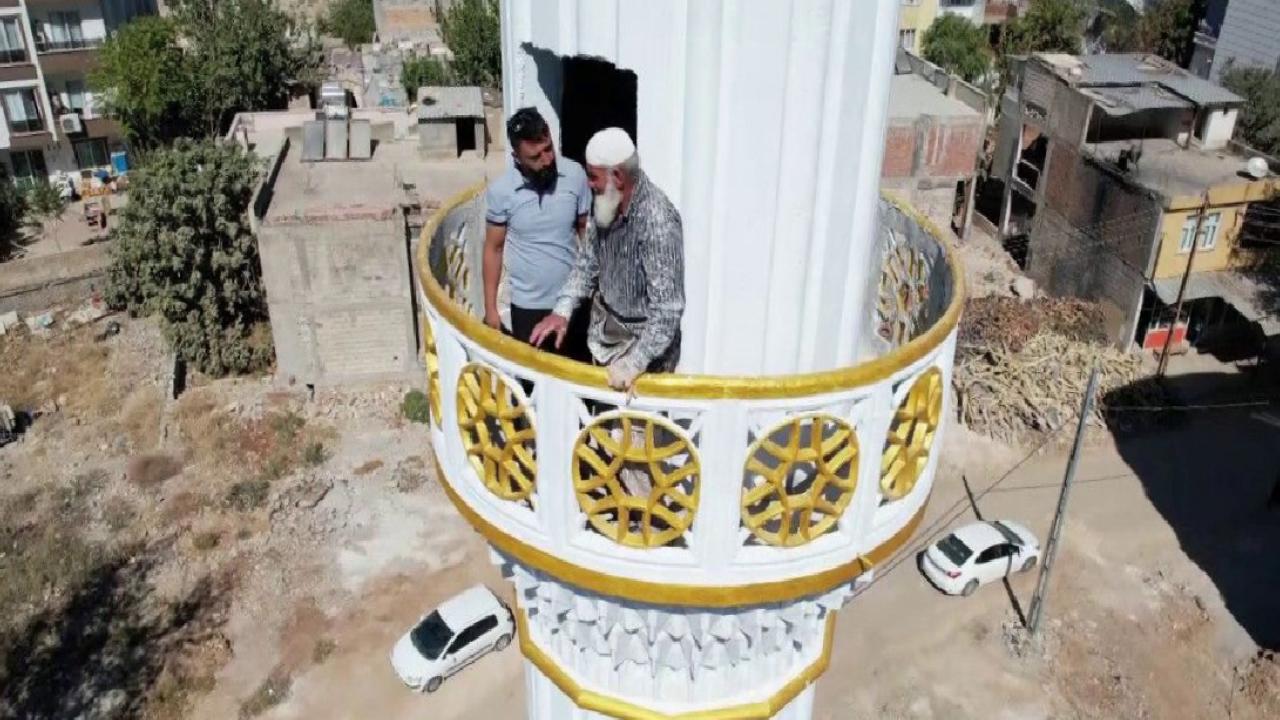 İlerlemiş yaşına rağmen metrelerce yüksekte çalışan Rizeli minare ustası Hasan Yazıcı, Tunceli hariç Türkiye'nin tüm illerinde minare yaptı.