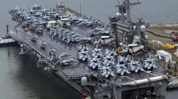 Güney Kore donanmasından yapılan açıklamada, uçak gemisinin, güdümlü füze taşıyan USS Halsey ve savaş gemisi USS Daniel Inouye ile birlikte deniz üssüne girdiği aktarıldı.