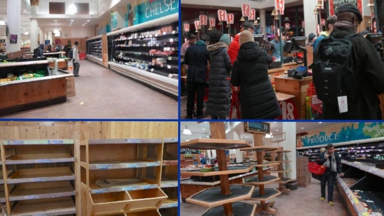 New York ve New Jersey civarındaki market ve süpermarketlerin özellikle su, ekmek ve makarna gibi temel gıda ürünlerinin yer aldığı raflar müşteri akınına uğrarken, alışveriş arabaları ağzına kadar dolduruldu.