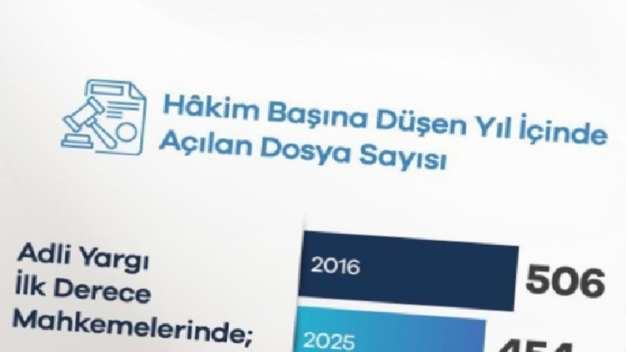 Verilere göre yargı süreçlerinde süreler de kısaldı. Cumhuriyet başsavcılıklarında ortalama dosya görülme süresi 2016’da 431 gün iken 2025’te 393 güne geriledi. İhbar dosyalarında ise bu süre 51 güne kadar düştü. Boşanma davalarının ortalama görülme süresi de 160 güne indi. Hakim başına düşen dosya sayısında da azalma yaşandı. 2016 yılında 506 olan dosya sayısı, 2025’te yüzde 10,3 düşüşle 454’e geriledi.