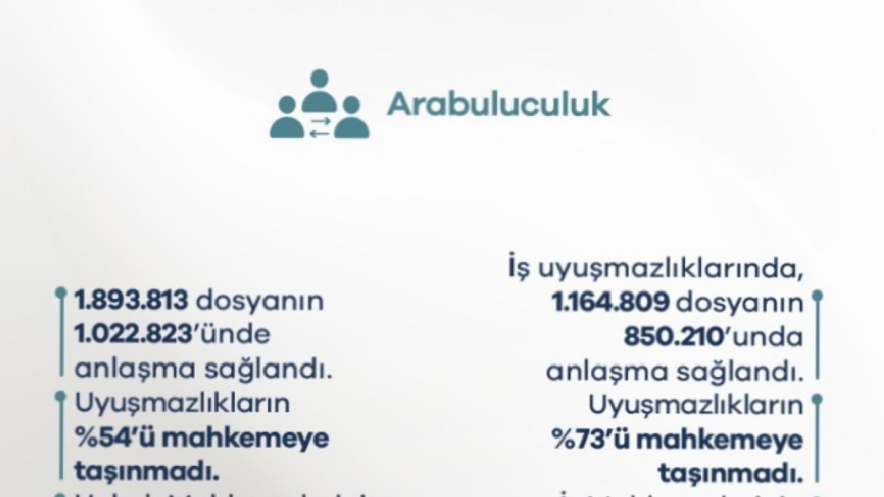Alternatif uyuşmazlık çözüm yöntemlerinin yaygınlaştırılması da istatistiklere yansıdığına dikkati çeken Bakan Gürlek, 2025 yılında arabuluculuk kapsamında uyuşmazlıkların yüzde 54’ü anlaşmayla sonuçlanırken, bu sayede hukuk, iş, tüketici ve ticaret mahkemelerinde iş yükünde ciddi düşüşler yaşandığı, özellikle iş mahkemelerinde yüzde 77,5, tüketici mahkemelerinde ise yüzde 46,1 oranında azalmanın dikkat çktiğini kaydetti.
