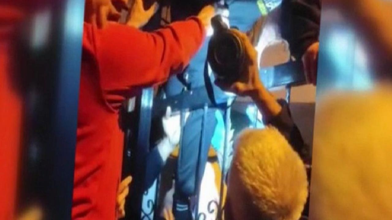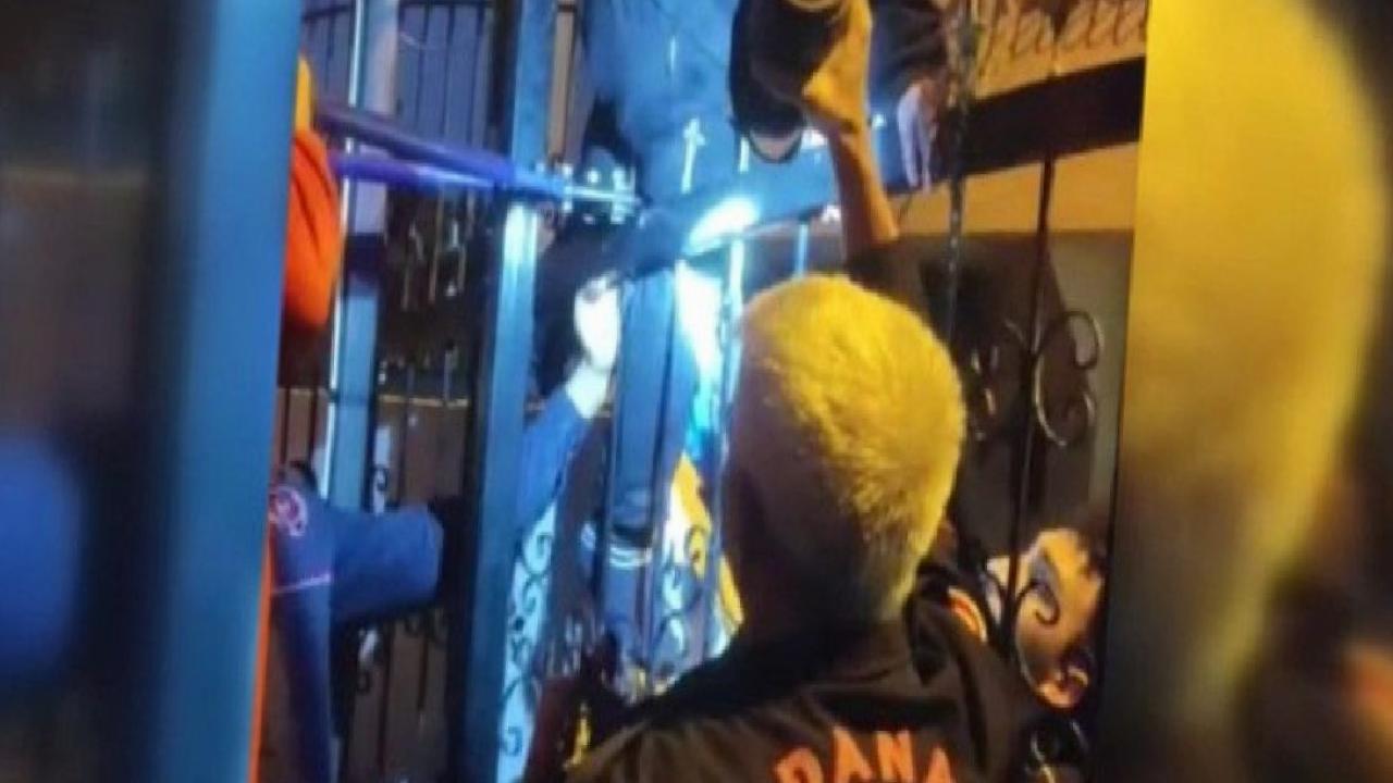 Çevredekilerin ihbarı üzerine olay yerine giden itfaiye ekipleri korkuluk demirini kesti.