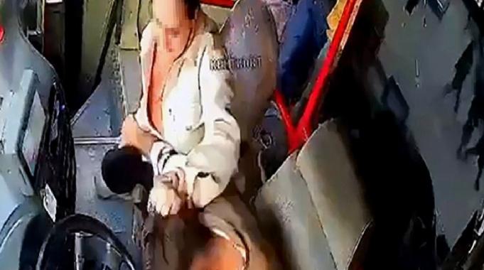 Eşinin direksiyonda olduğunu gören Sabriye A., arka kapıdan otobüse binip, sürücü bölümüne yöneldi.