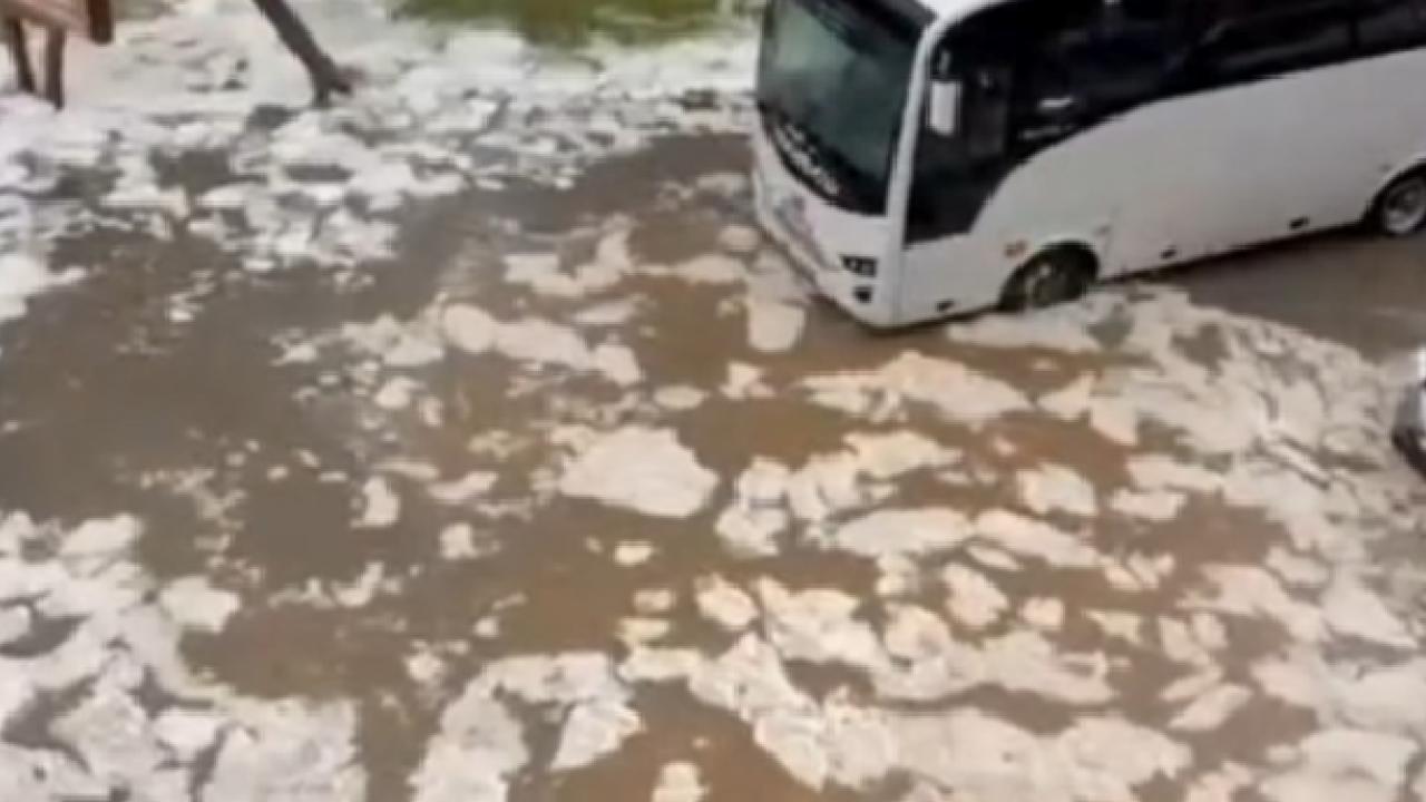 Meteoroloji Genel Müdürlüğü'nün 'sarı' kodlu uyarıda bulunduğu kentte aniden başlayan sağanak, ardından dolu yağışına dönüştü. Şiddetli dolu yağışı sonrası cadde ve sokaklar beyaza büründü.