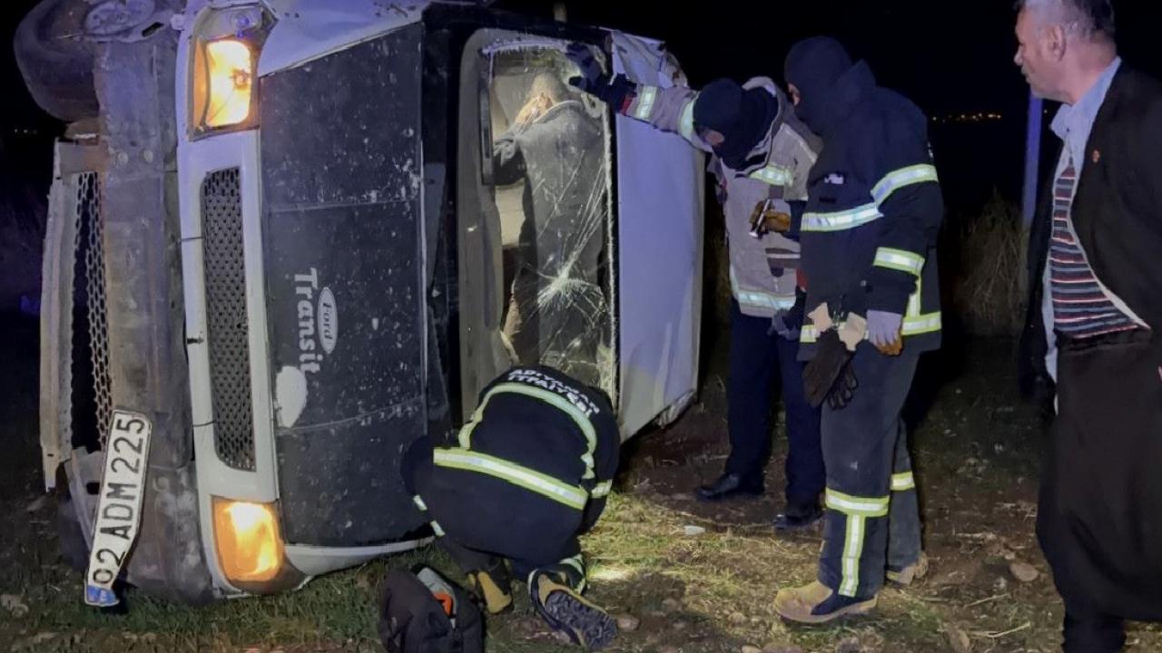 Sürücüsü henüz belirlenemeyen minibüs, Adıyaman- Kahta Karayolu 10. kilometrede sürücüsünün direksiyon hakimiyetini kaybetmesi sonucu taklalar atarak şarampole devrildi.