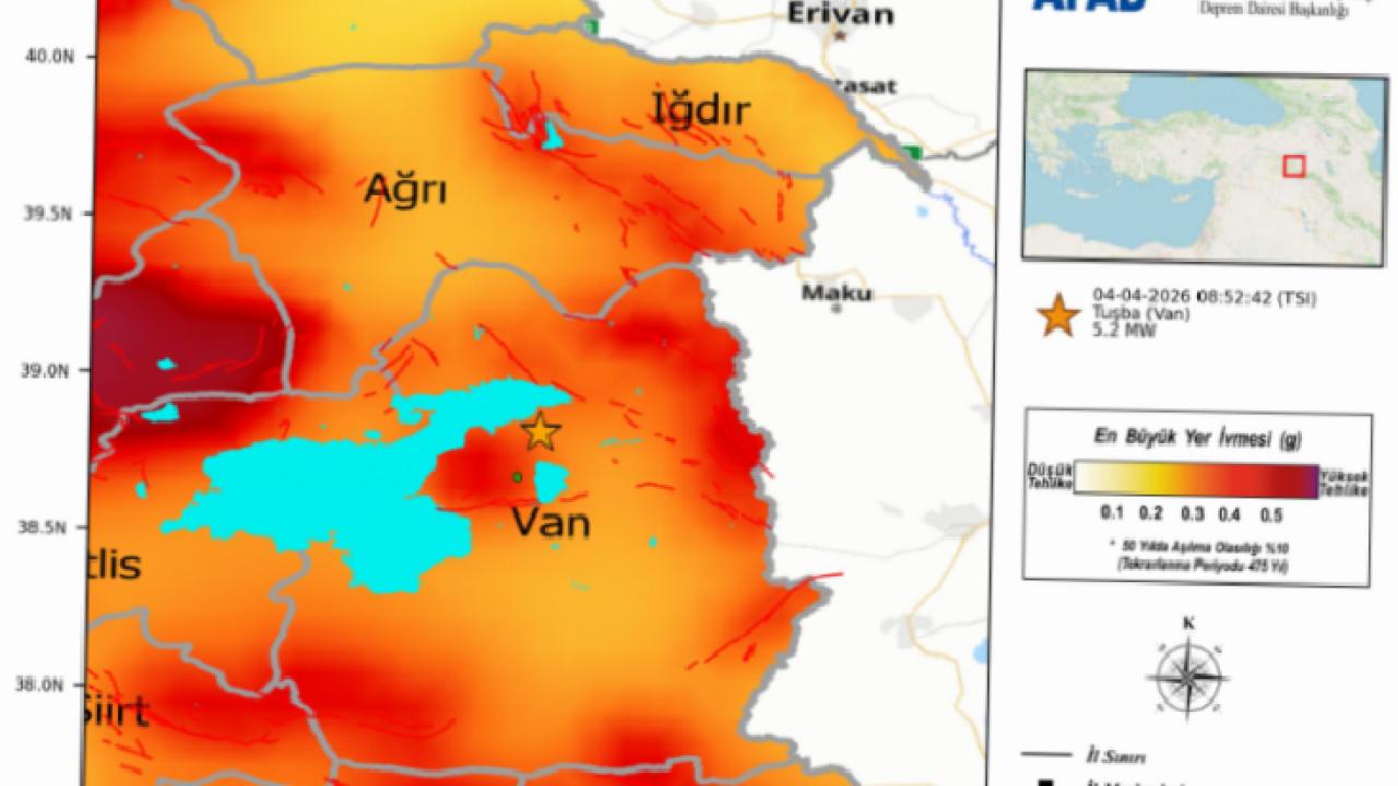 ANKARA () - Afet ve Acil Durum Yönetimi Başkanlığı (AFAD), 4 Nisan 2026 tarihinde Van’ın Tuşba ilçesinde meydana gelen 5,2 büyüklüğündeki depreme ilişkin ön değerlendirme raporunu kamuoyuyla paylaştı.