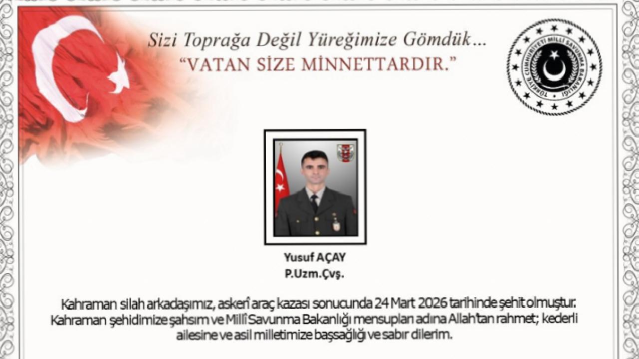 ANKARA () - Ağrı Doğubeyazıt’ta meydana gelen askeri araç kazasında Hatay Kırıkhan doğumlu Piyade Uzman Çavuş Yusuf Açay şehit oldu.
