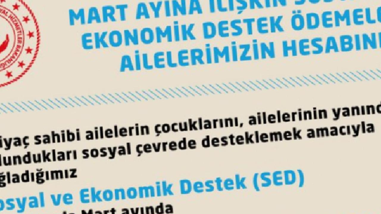 ANKARA () - Aile ve Sosyal Hizmetler Bakanlığı, Sosyal ve Ekonomik Destek (SED) hizmet modeli kapsamında Mart ayında toplam 1 milyar 816 milyon TL tutarında ödeme gerçekleştirdi.