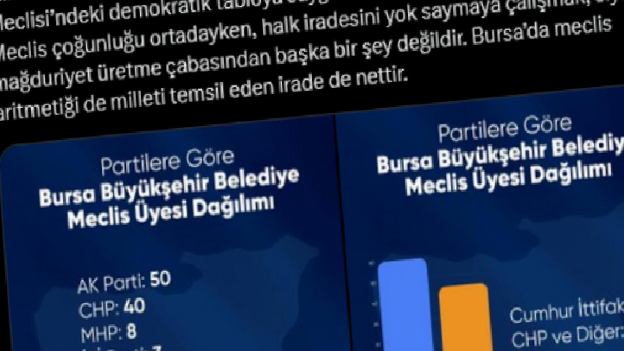 BURSA () - AK Parti Bursa İl Başkanı Davut Gürkan, Bursa Büyükşehir Belediye Meclisi’nin başkanvekili seçimi için olağanüstü toplanmasına saatler kala sosyal medya hesabından dikkat çeken bir açıklamada bulundu.
