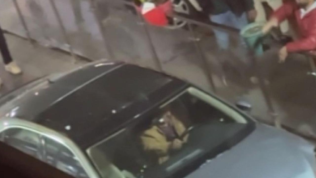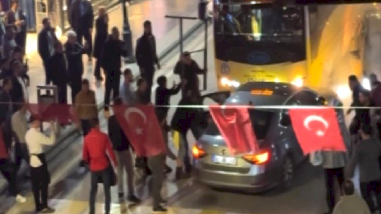 Tekme atarak araç camlarını kırmaya çalışan kadın erkek vatandaşlar, bir süre sonra sürücüyü tekme tokat darbetti.