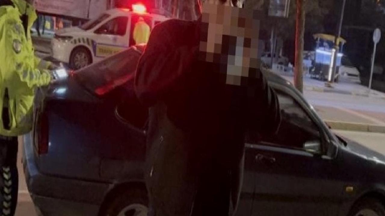 Direksiyon başında elinde alkol şişesiyle birlikte polise yakalanan 56 yaşındaki Osman K. isimli sürücü polis memurlarınca araçtan indirildi.