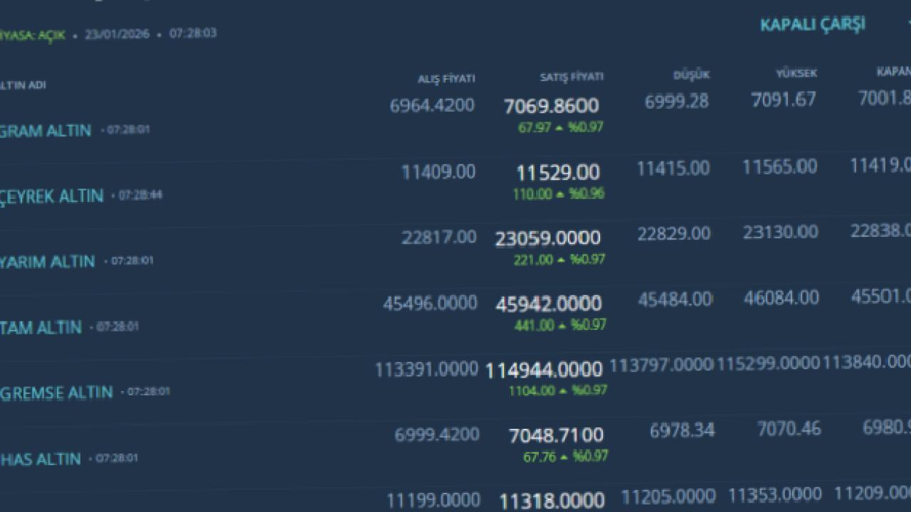 Onstaki hareketlilik gram altın fiyatını da yeni rekorlara taşıyor. 23 Ocak 2026 gram altın fiyatı spot piyasada 6.919 TL ile yeni rekor seviyesine ulaştı.