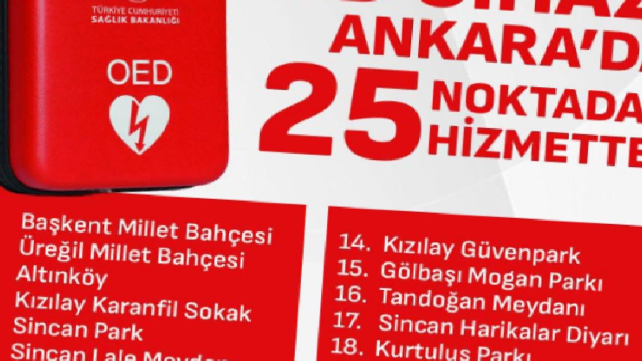 ANKARA () - Sağlık Bakanlığı ve ASELSAN iş birliğiyle geliştirilen Otomatik Şok Cihazı (OED) Projesi, Ankara’da halkın kullanımına sunuldu. Yerli mühendislik gücüyle tasarlanan cihazlar, il genelinde belirlenen 25 noktaya yerleştirildi.