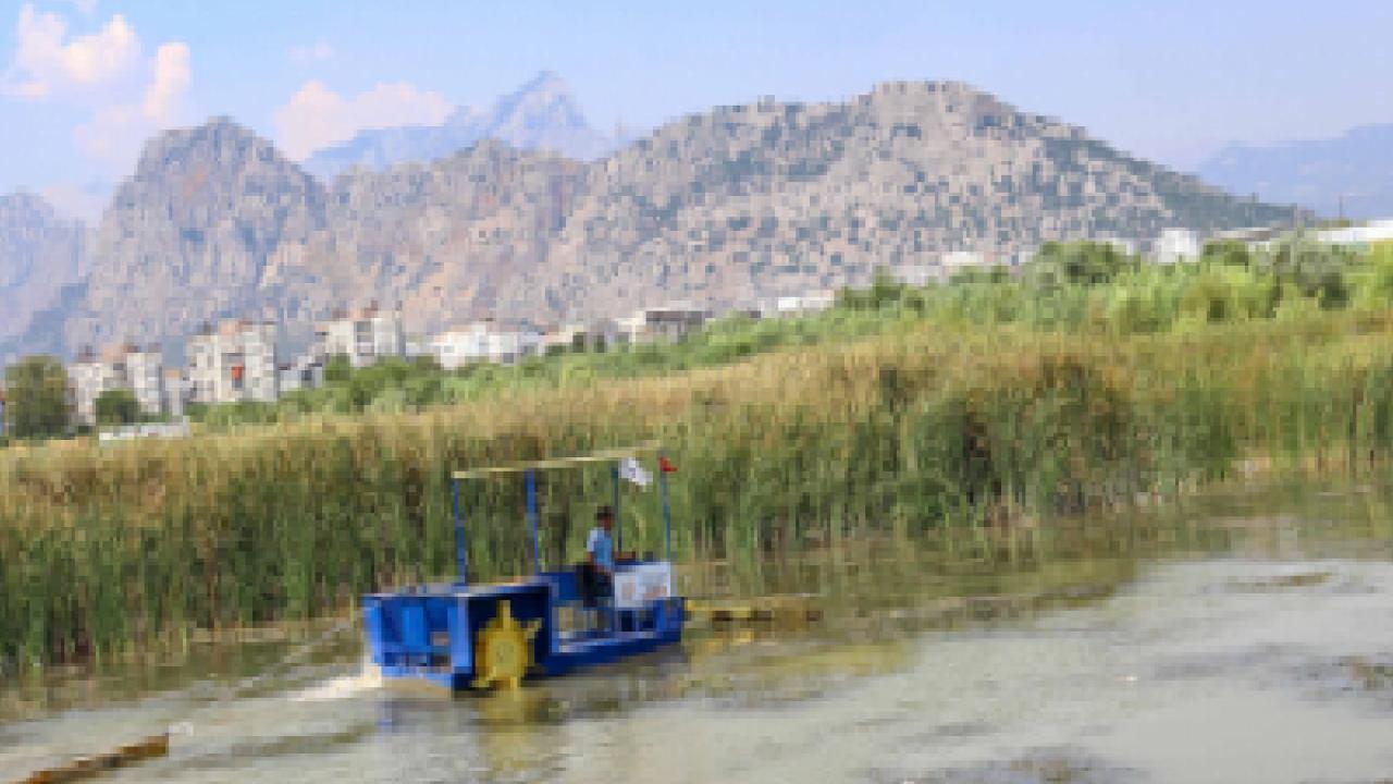 ANTALYA () - Yaz mevsimiyle birlikte Boğaçayı’nda artış gösteren sucul bitkiler ile yüzey çöpleri çevre kirliliği, kötü koku ve sinek oluşumuna neden olmaması amacıyla her gün temizleniyor. Çevre Koruma ve Kontrol Dairesi Başkanlığı’na bağlı Deniz ve Kıyı Yönetimi Şube Müdürlüğü ekipleri, Boğaçayı’nda sucul bitki temizliğini haftanın 7 günü düzenli olarak gerçekleştiriyor. Antalya Büyükşehir Belediyesi’ne ait “Caretta” ve “Mavi Yengeç” isimli sucul ot kesme tekneleri ile yüzeydeki bitkiler kesiliyor, ardından iş makineleri yardımıyla karaya çıkarılarak çöp döküm alanına taşınıyor.