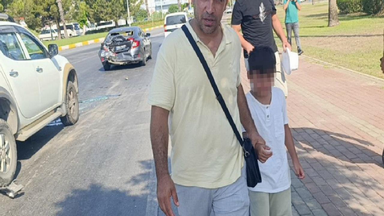 Kaza yapan otomobilde bulunan ve kazayı yaralanmadan atlatan küçük çocuk, kaza sonrası otomobillerinin halini görünce büyük üzüntü yaşadı.