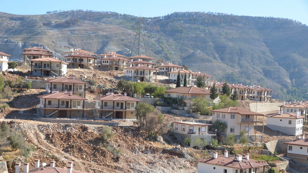 Kepezbeleni Mahallesi'nin görüntüsü ise şantiyeyi andırıyor. 63 evin yandığı mahallede yeni evlerin yapımı tamamlandı.