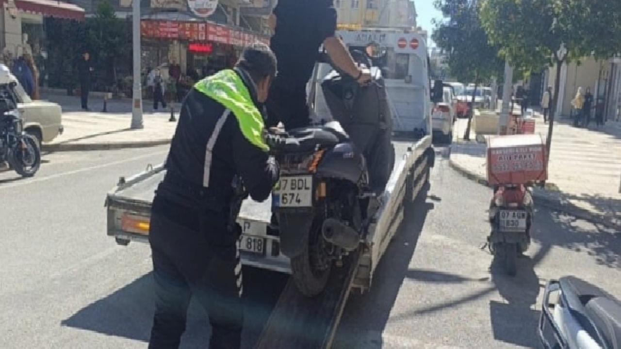 Antalya’nın Manavgat ilçesinde, Aşağı Hisar Mahallesi Gülveren Caddesi üzerinde devriye misyonunda olan trafik polisleri, plakası beyaz bir kağıtla kapatılmış 07 BDL 674 plakalı motosikleti durdurdu.
