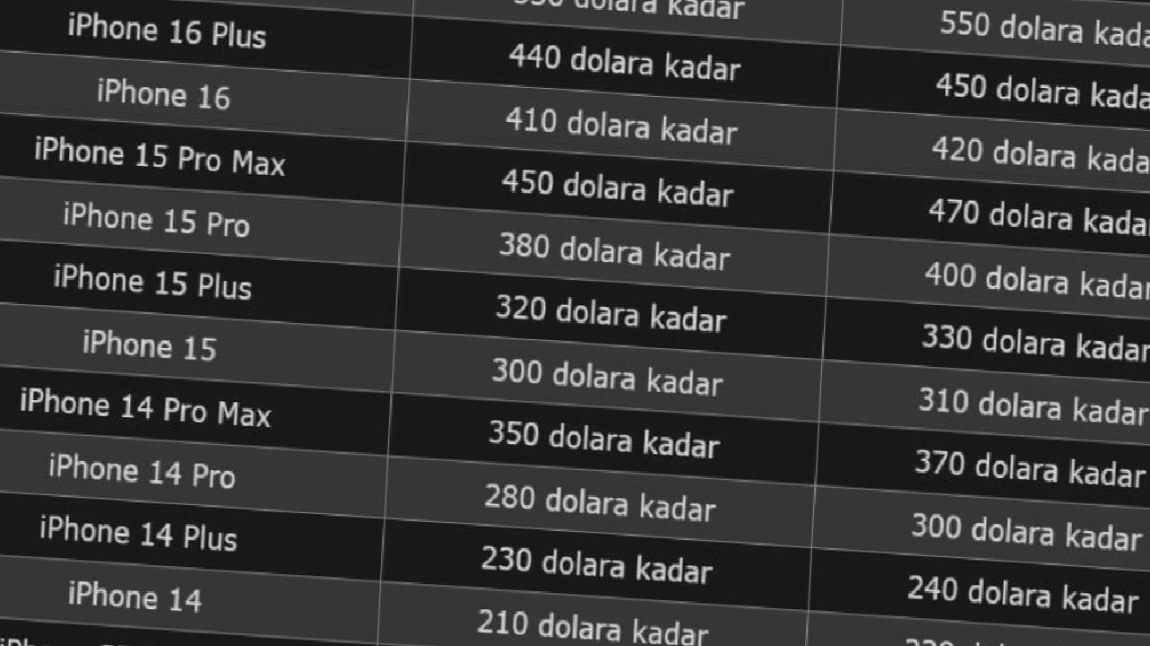 Yayımlanan yeni listeye göre şirketin en güncel amiral gemisi iPhone 16 Pro Max'in takas değeri 670 dolardan 650 dolara geriledi.