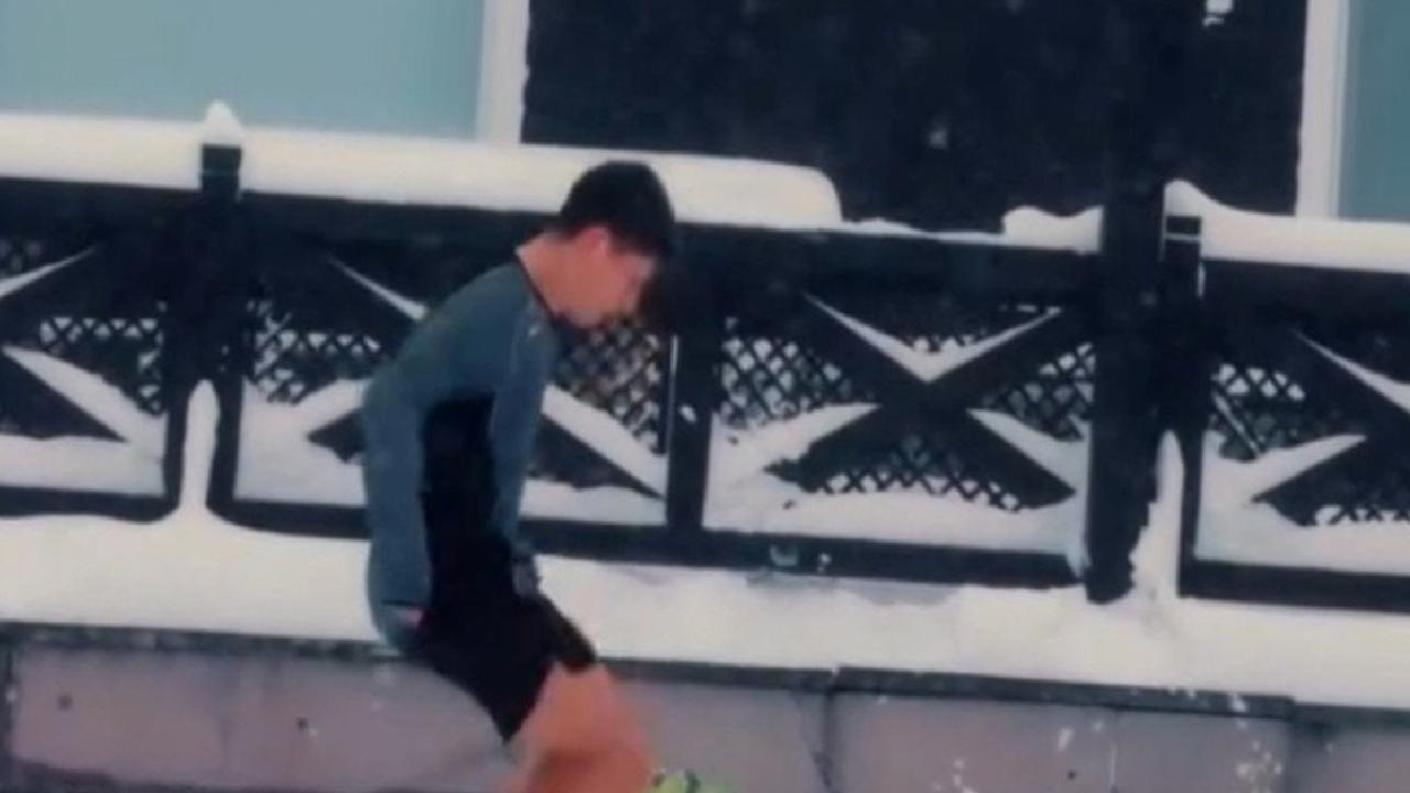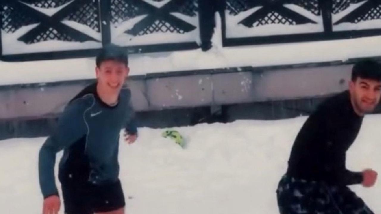 Bölgede etkili olan kar yağışını fırsat bilen Arda Güler, Yiğit Efe Demir ile birlikte dışarı çıkarak beyaz örtü üzerinde futbol oynadı.