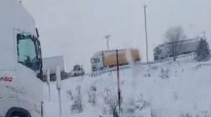 Ardahan-Posof kara yolunun Ulgar dağı mevkiinde tırlar yoğun kar yağışı ve tipi yüzünden yolda kaldı.