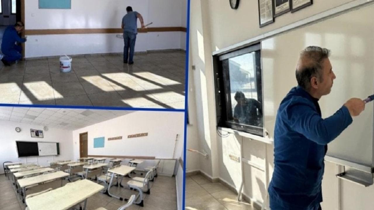 Badana, sıva ve boya işlemlerinin ardından genel temizlik çalışmalarının gerçekleştirildiği okulda, sıralar düzenlenerek sınıflar eğitim öğretime hazır hale getirildi. İdarecilerin bizzat çalışmalara katılması, okulda dayanışma örneği sergiledi.