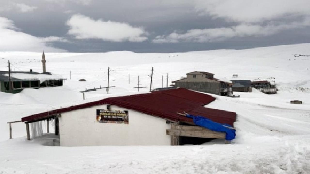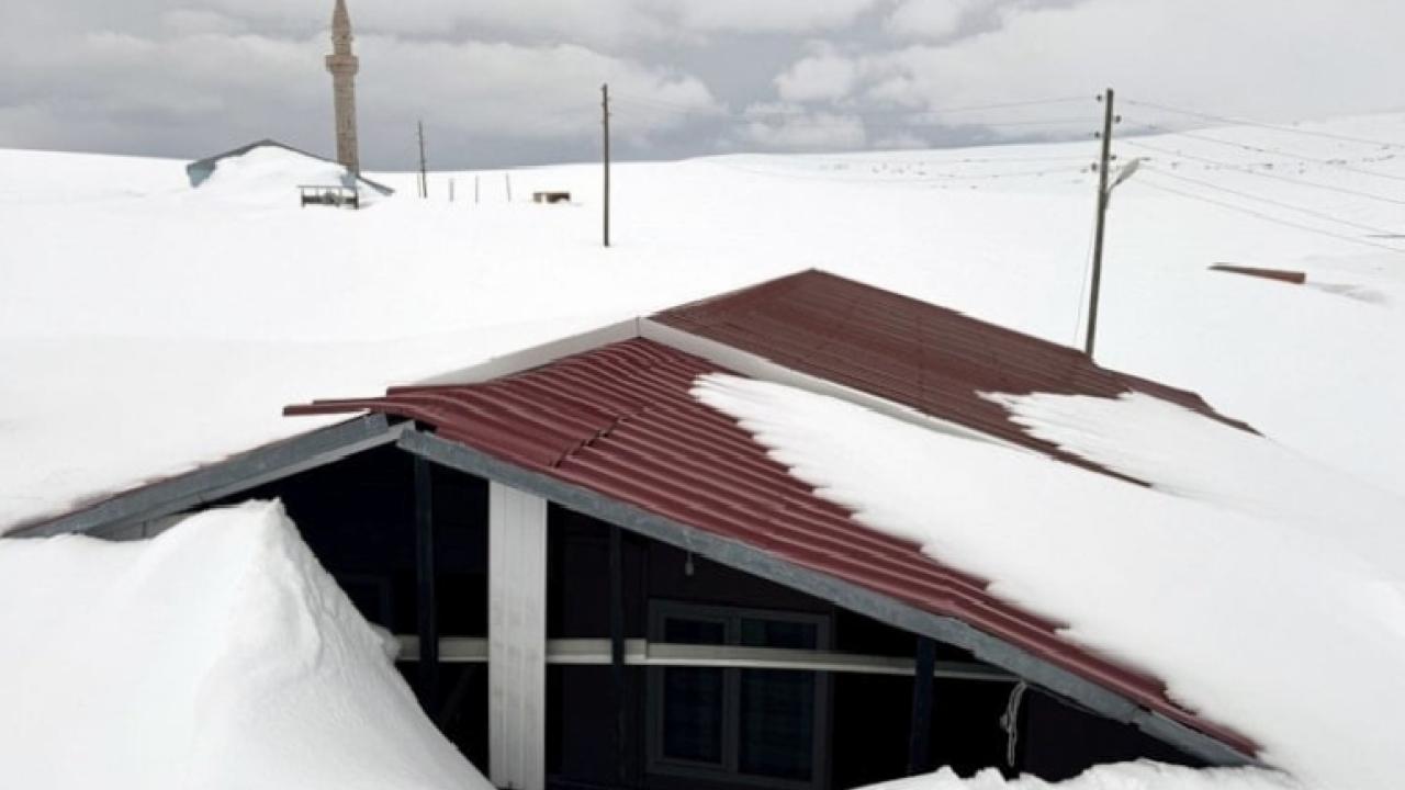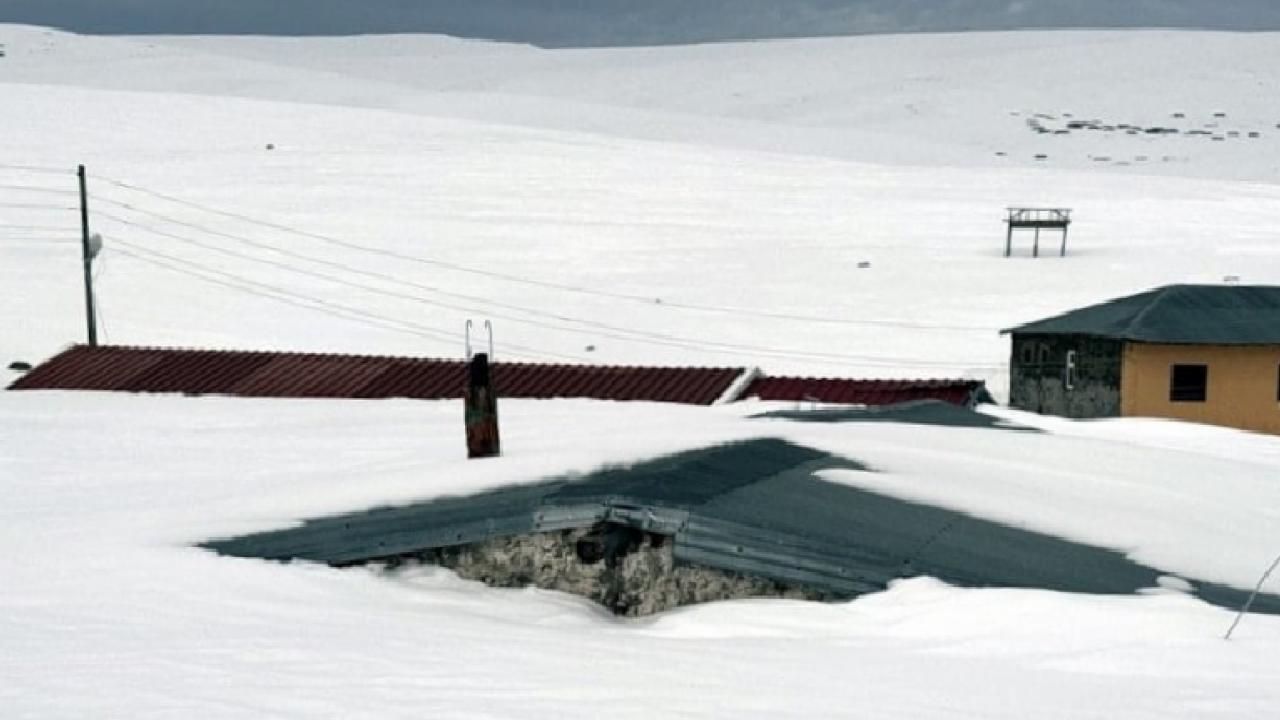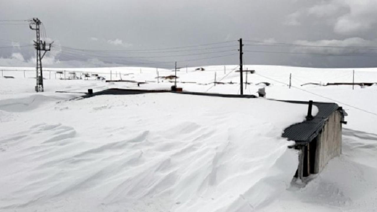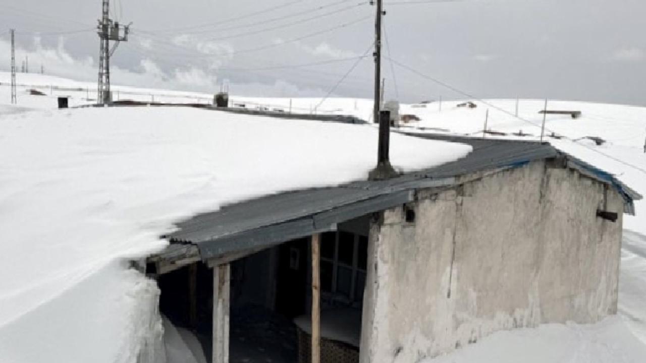 İlkbahar mevsiminde de yoğun karın etkili olduğu bölgede, yöre halkının yazın kullandığı evler kar altında kaldı.