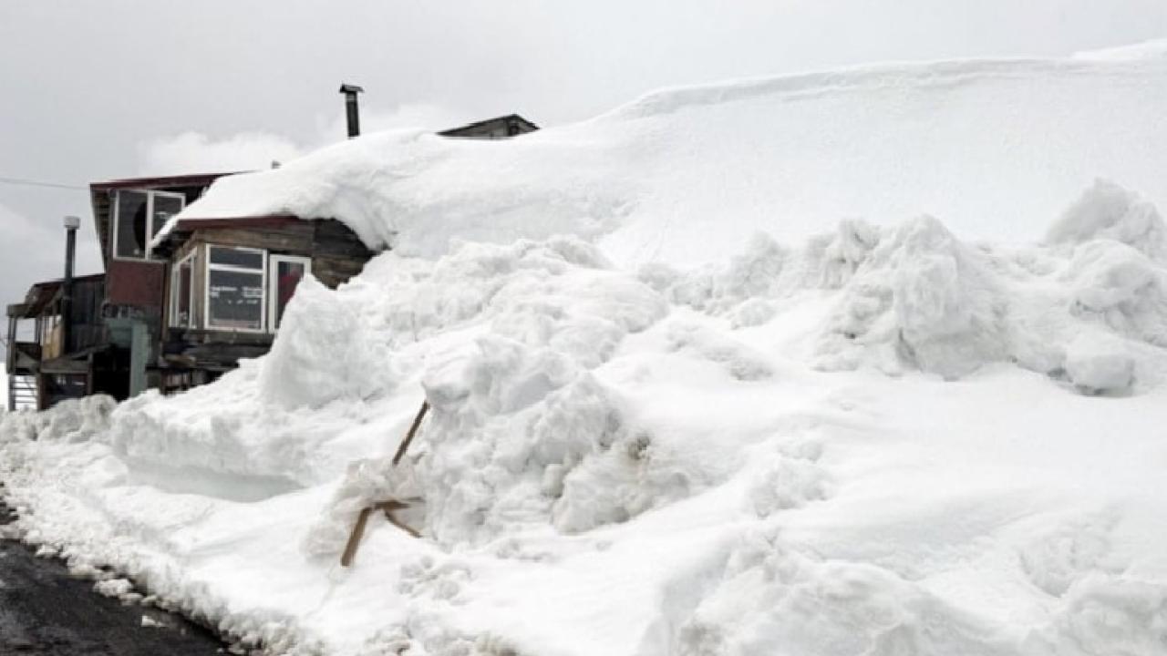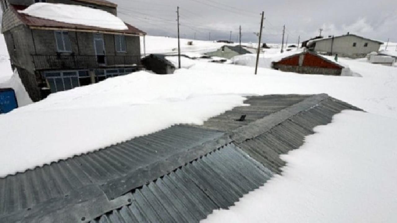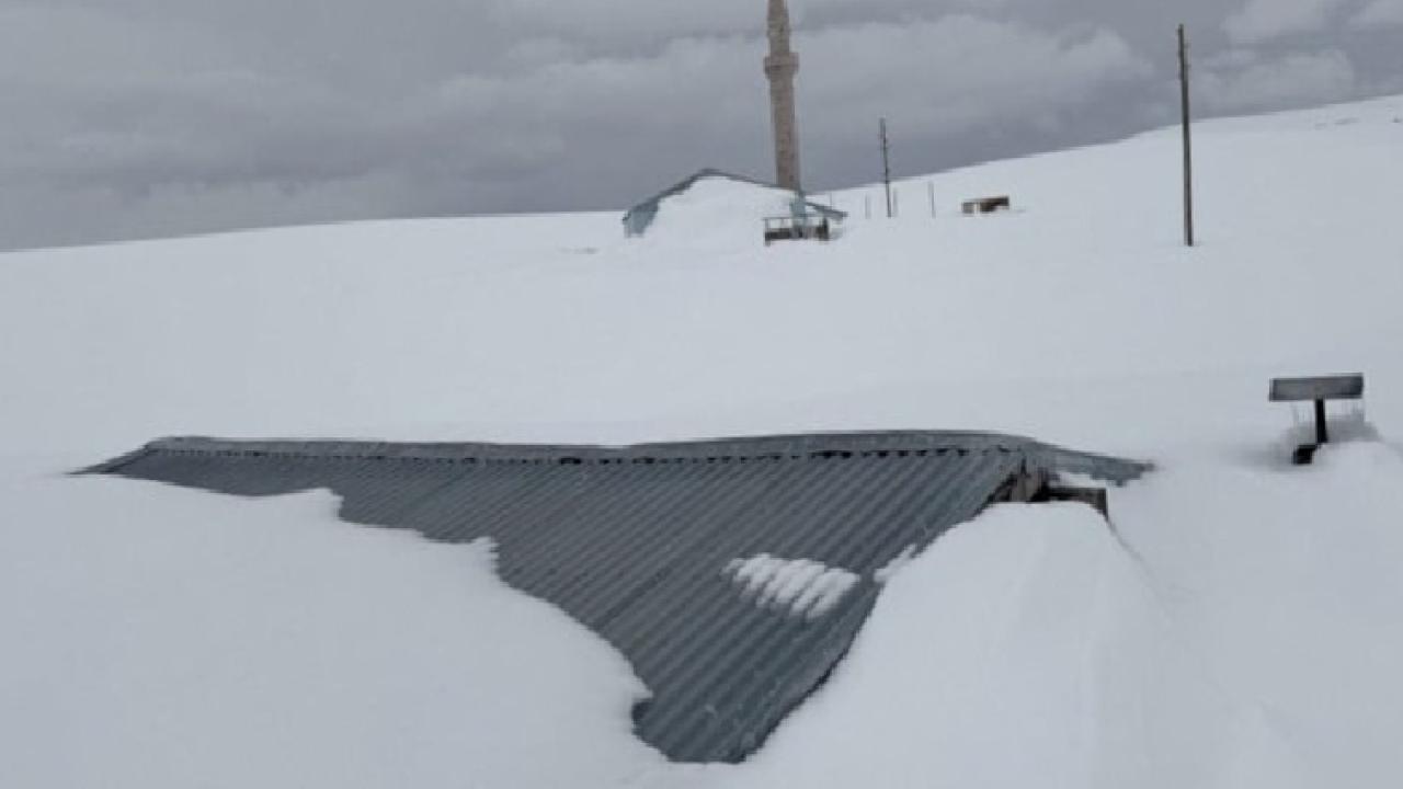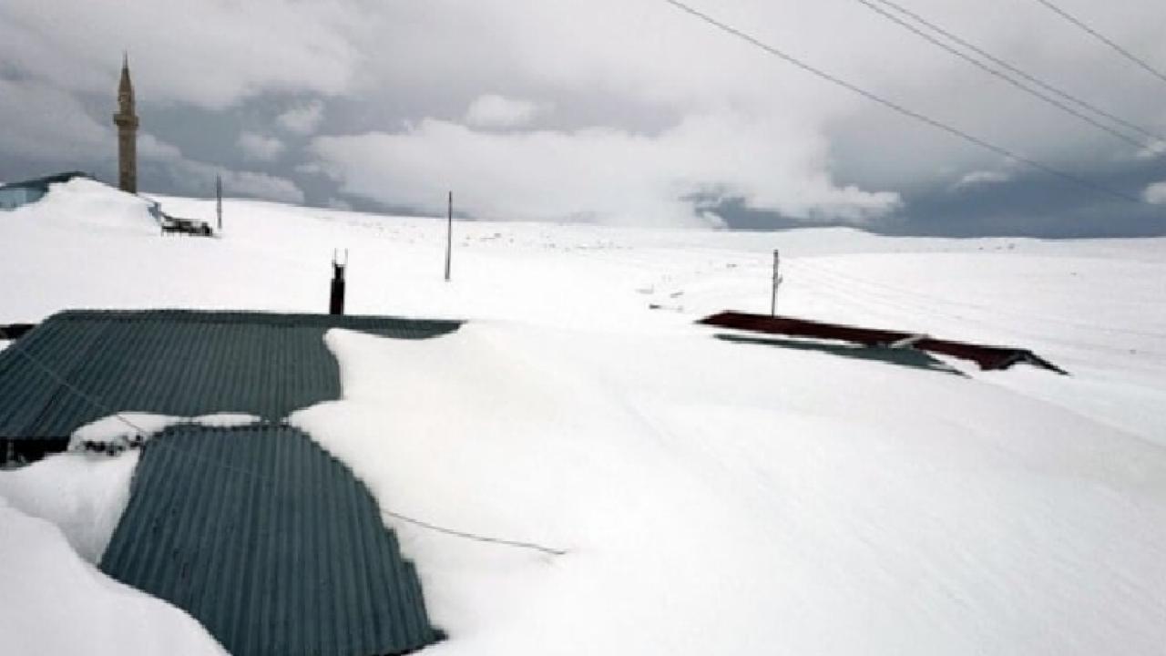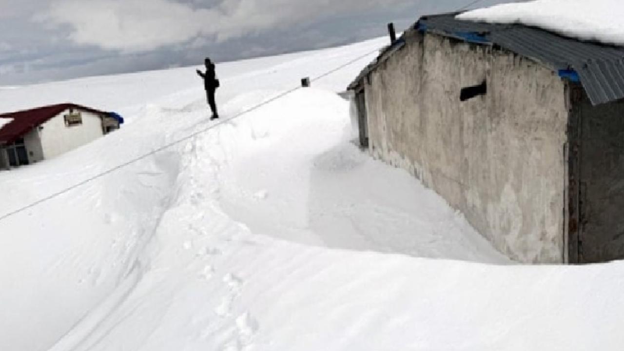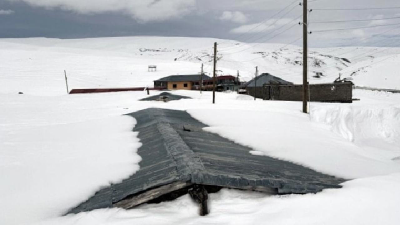 İlkbahar mevsiminde de yoğun karın etkili olduğu bölgede, yöre halkının yazın kullandığı evler kar altında kaldı.