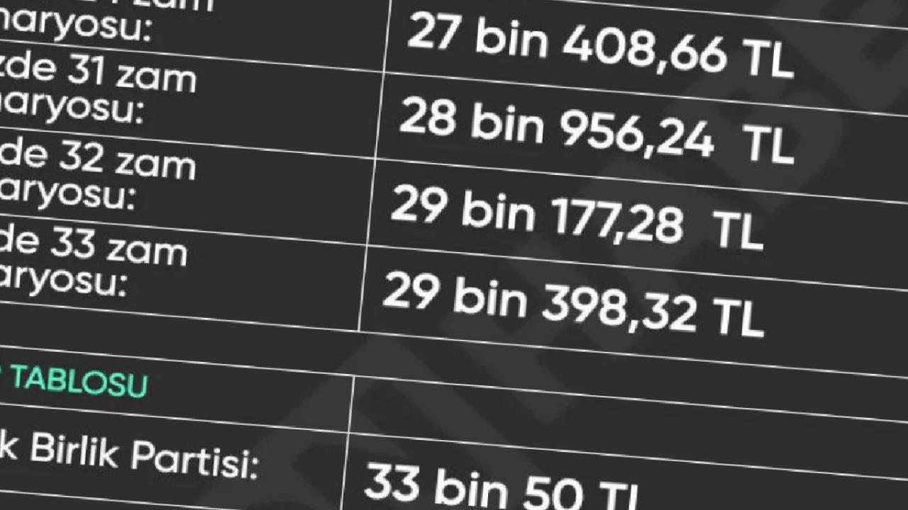 YÜZDE 33 ZAM: 29 BİN 398,32 TL