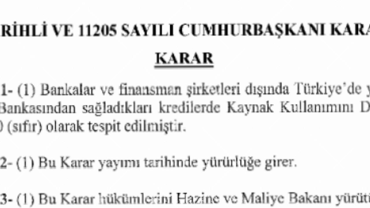 ANKARA () - Hazine ve Maliye Bakanlığı’nca hazırlanan düzenleme Resmi Gazete’de yayımlandı. Cumhurbaşkanı Kararı (Karar Sayısı: 11205) ile “Kaynak Kullanımını Destekleme Fonu Kesintisi Hakkında Karar” yürürlüğe girdi.