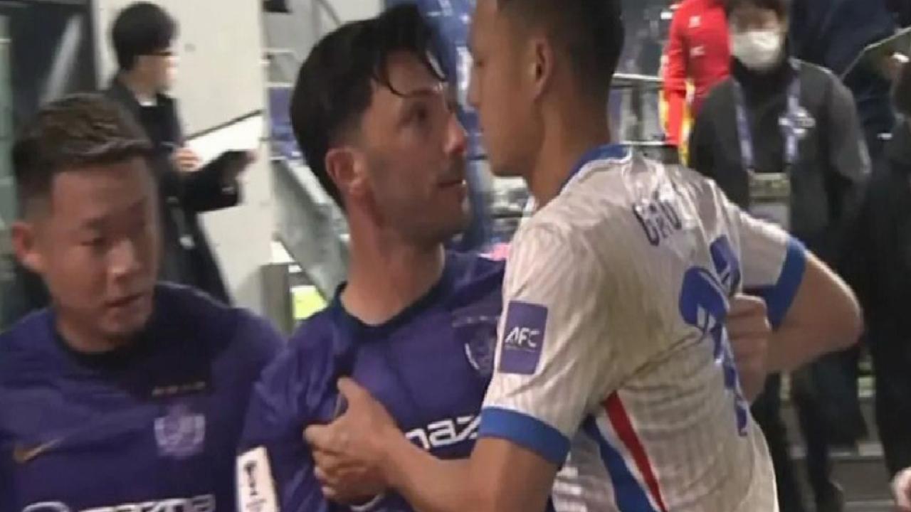 Karşılaşmanın devre arasında Sanfrecce Hiroshima forması giyen Tolgay Arslan, tünelde Shanghai Shenhua'lı oyuncularla gerginlik yaşadı.