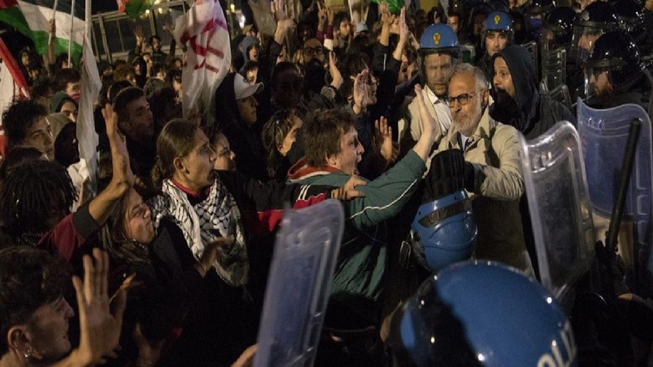 İsrail’in müdahalesine sert tepkilerin yükseldiği İtalya’nın başkenti Roma’da bir araya gelen göstericiler Sumud Filosu’na yönelik yasa dışı müdahaleyi kınarken, İtalyan sendikaların çağrısıyla yarın ülkede gerçekleştirilmesi beklenen greve verecekleri destekleri yineledi.