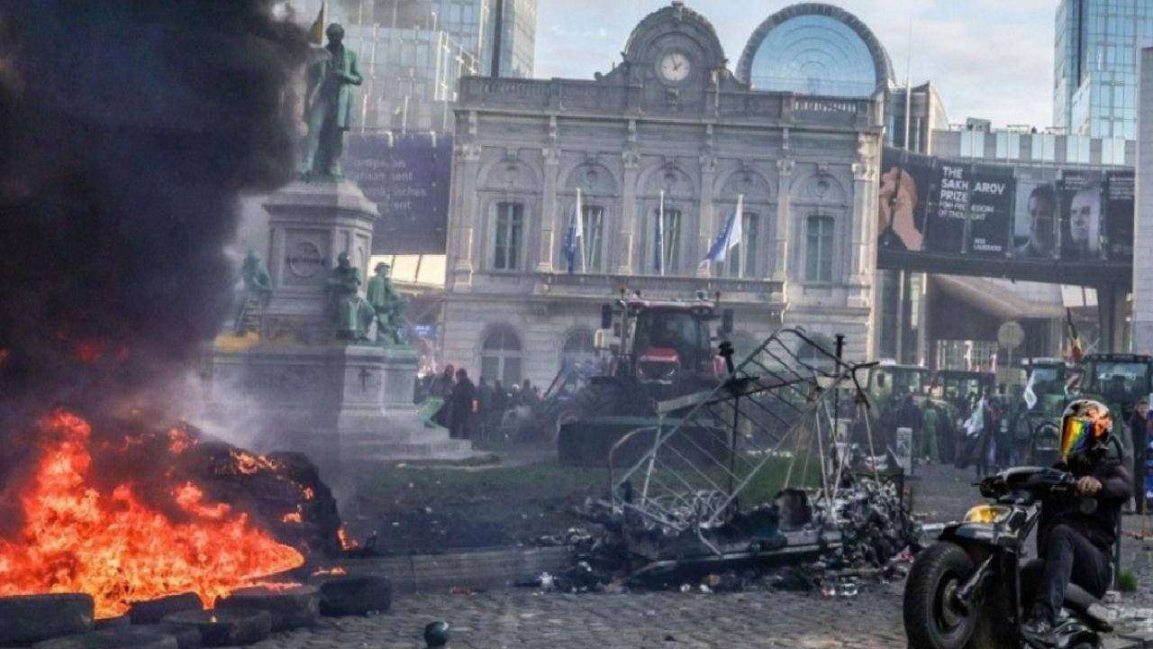 Protestocular, Avrupa Parlamentosu binası önünde ateş yakarken, çevredeki binalara taş, sis bombası ve havai fişek attı. Lüksemburg Meydanı’nda kurulan polis barikatları traktörlerle yıkıldı. Gösteriler sırasında sokaklar adeta savaş alanına döndü.