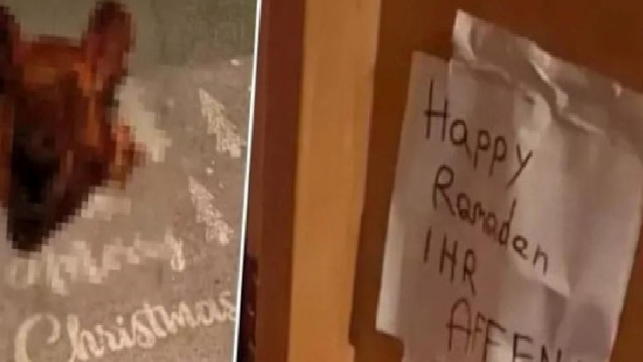 Henüz kimliği belirlenemeyen bir şüpheli, ailenin evinin önüne domuz kafası ve kapı kenarına ramazan ayı ile aileye yönelik hakaret içeren bir yazı bıraktı.