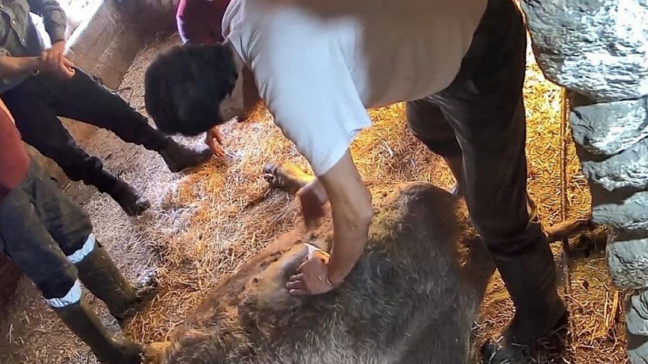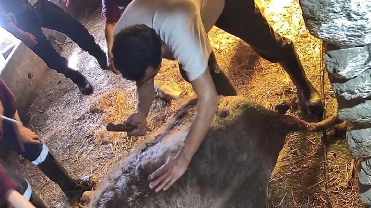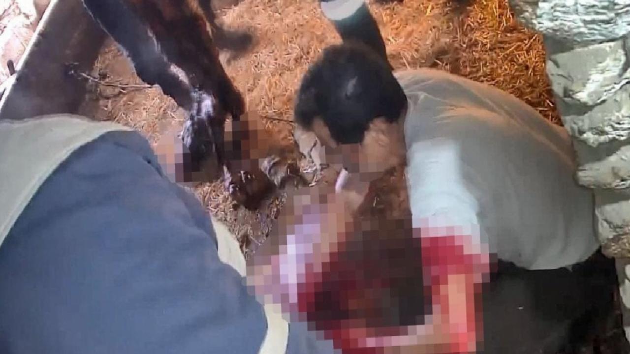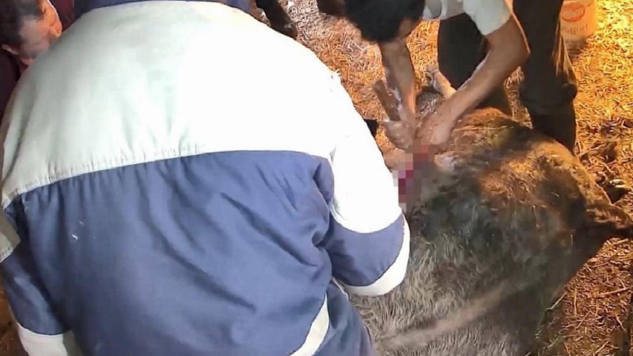 Ahıra gelen S.T., doğmakta olan buzağının ayaklarına ip bağlayarak çekme yöntemiyle doğuma yardımcı olmaya çalıştı. Ahırda bulunan yaklaşık 5 kişinin desteğine rağmen doğum gerçekleşmeyince bu kez cerrahi müdahale kararı alındı.