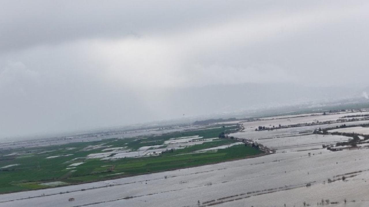 Aydın'ın Koçarlı ilçesine bağlı Kasaplar mevkiinde hayvanlarını korumak amacıyla damda bekleyen Abdullah Öpöz, taşkın nedeniyle mahsur kaldı.