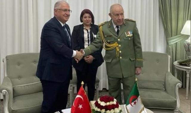 Bakanlıktan yapılan açıklamaya göre, Cumhurbaşkanı Recep Tayyip Erdoğan’ın Cezayir ziyaretine eşlik eden Milli Savunma Bakanı Yaşar Güler, Cezayir Genelkurmay Başkanı Orgeneral Said Chanegriha ile bir görüşme gerçekleştirdi.