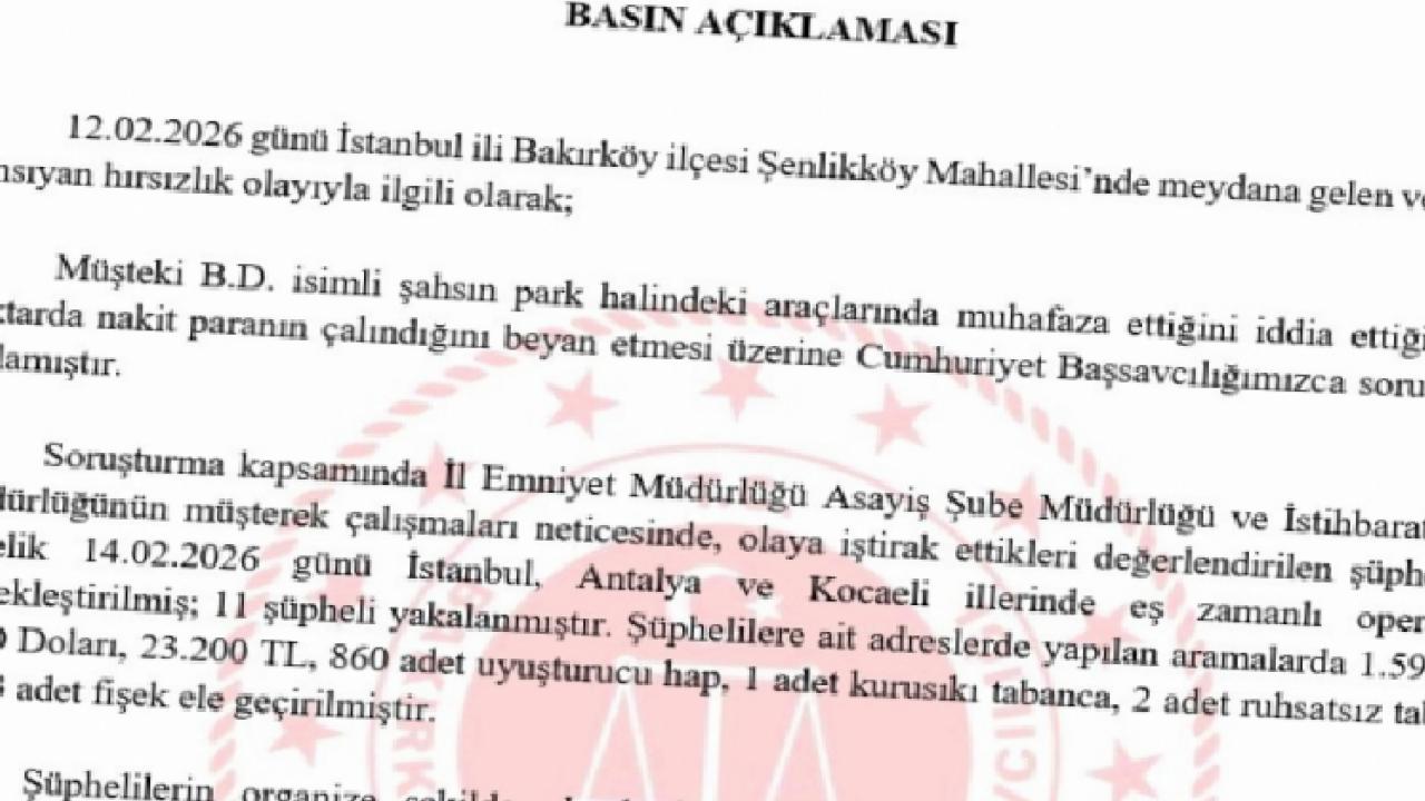 İSTANBUL () - İstanbul’un Bakırköy ilçesi Şenlikköy Mahallesi’nde 12 Şubat 2026 tarihinde meydana gelen ve kamuoyuna yansıyan hırsızlık olayı üzerine harekete geçen Bakırköy Cumhuriyet Başsavcılığı, kapsamlı bir soruşturma başlattı.