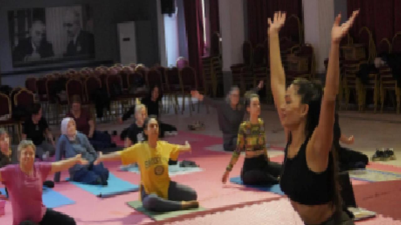 Uzman eğitmen eşliğinde gerçekleştirilen derslerde katılımcılar, esneklik, denge ve nefes teknikleri üzerine çalışıyor.