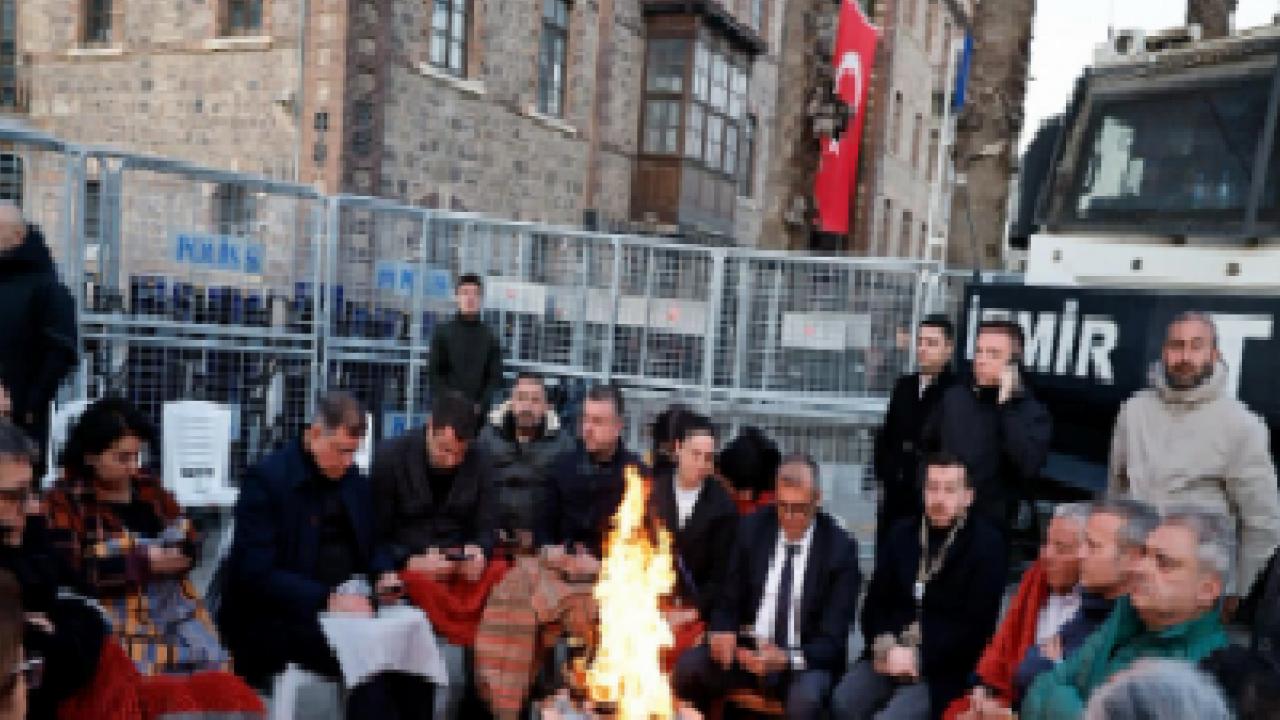 Bütün gece bina önünde olduklarını belirten Başkan Tugay, “İl başkanımız, bazı ilçe belediye başkanlarımız, meclis üyelerimiz ve partililerimiz burada. Kararlılığımızı göstermek için buradayız. Bu süreç hepimizi zorluyor ancak birilerinin buna karşı durması gerektiğine inanıyorum. Çünkü tümüyle yanlış ve haksız olan bu tutuma karşı net bir şekilde ‘hayır’ denilmesi gerekiyor. Biz yalnızca bu binanın korunması ve elde tutulması için değil, benzer durumların tekrar yaşanmaması için de çaba gösteriyoruz. Umuyorum ki bir sonuca ulaşırız. Ancak bu kararlı duruşun sürmesi gerekiyor. Daha fazla desteğe ihtiyaç duyduğumuz da bir gerçek. Buna rağmen, gerekirse tek başıma da devam edeceğim. Gücümüz yettiğince buradayız” dedi.