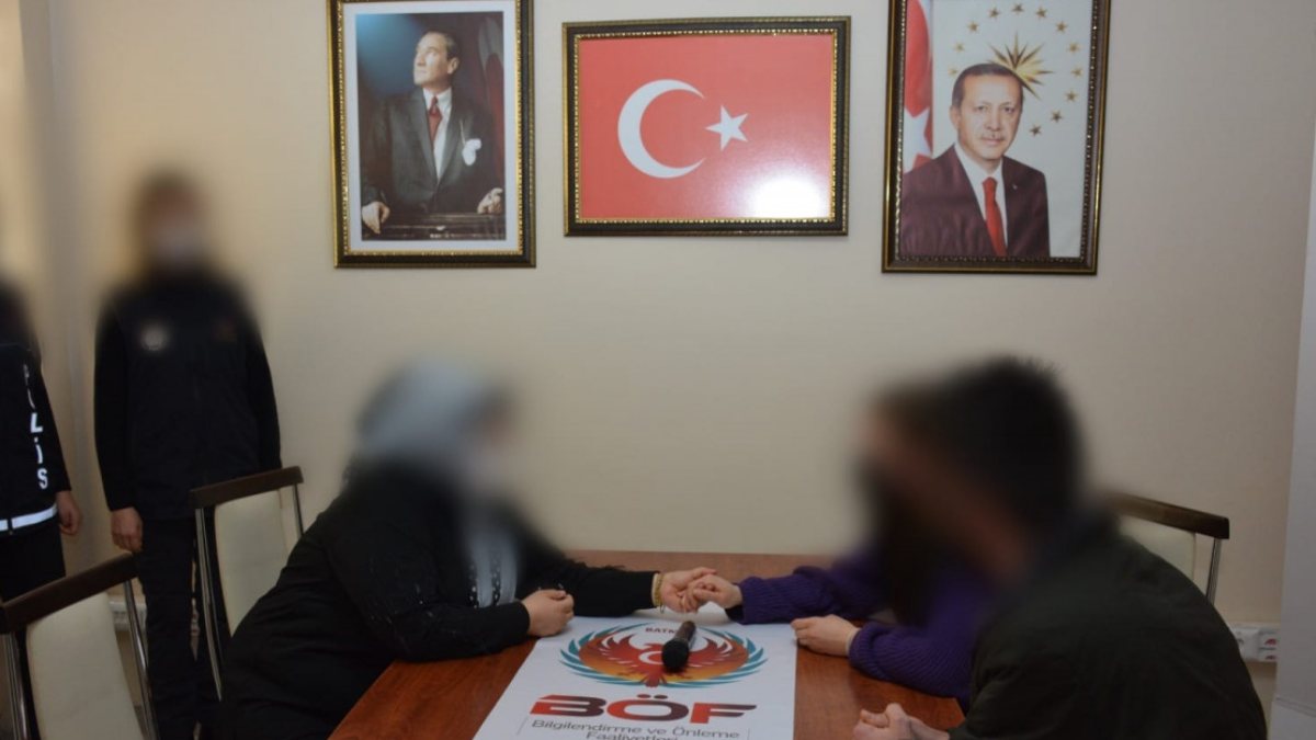 Batman İl Emniyet Müdürlüğü Terörle Mücadele Şube Müdürlüğü'nce yapılan soruşturmada örgüt mensupları, aileleriyle buluşturuldu.