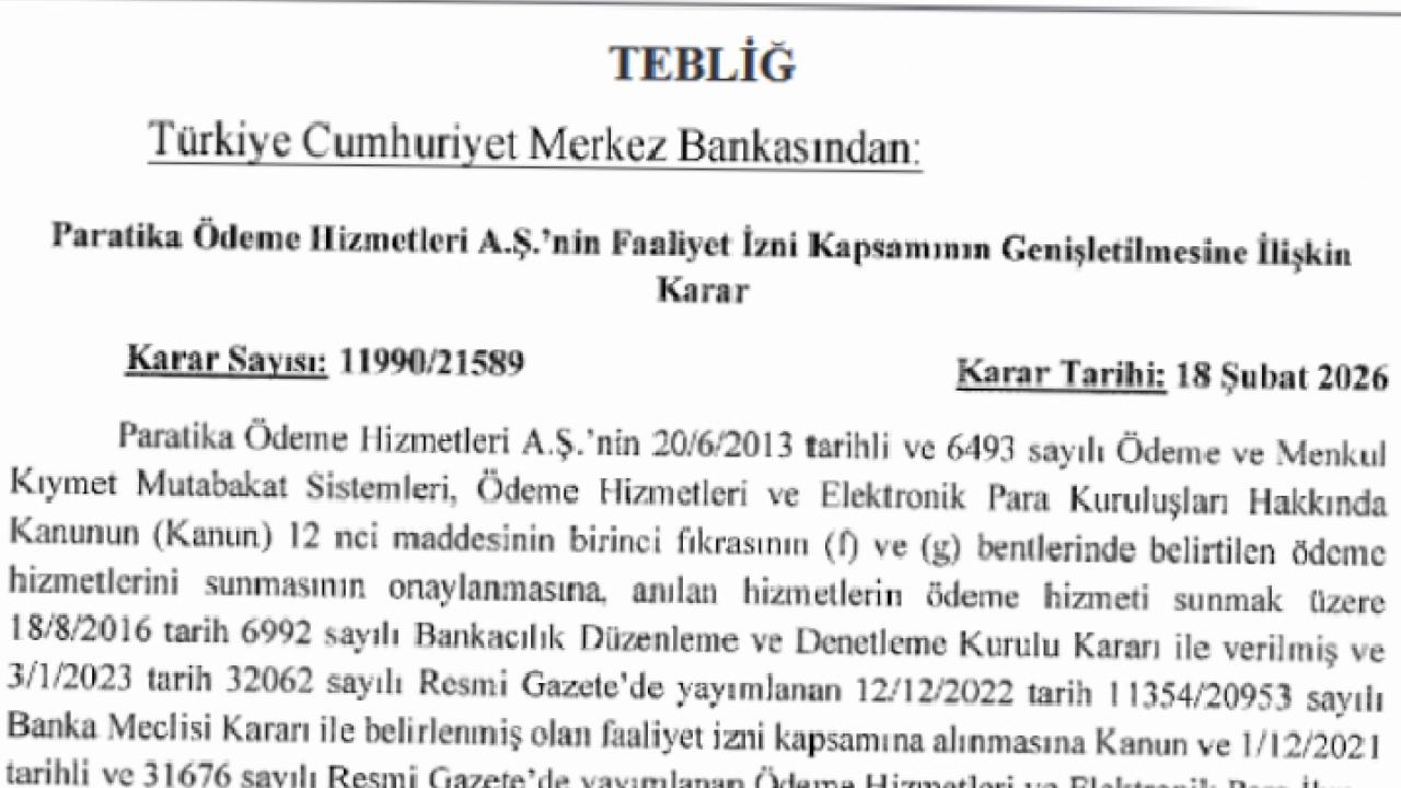Yeni tebliğ ile Paratika şirketi artık daha geniş ödeme hizmetleri sunabilecek.