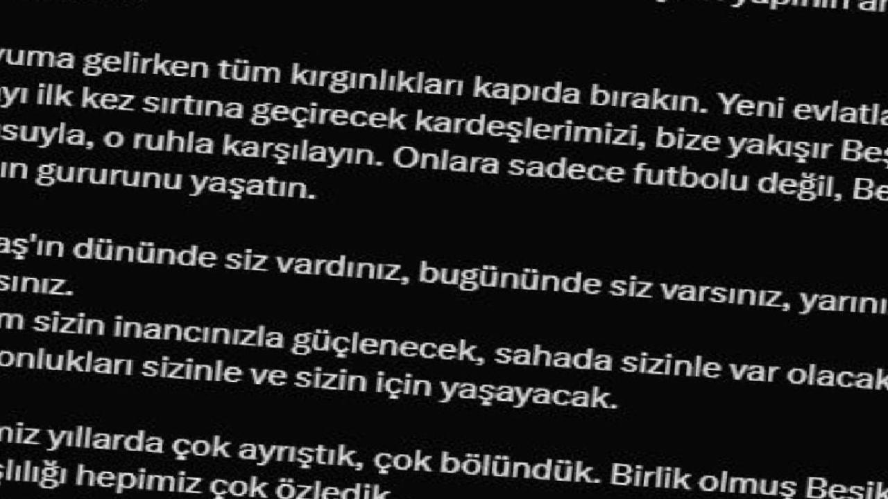 Adalı, paylaşımında Beşiktaş’ın yalnızca bir spor kulübü olmadığını vurgulayarak taraftarlardan takıma destek olmalarını istedi.