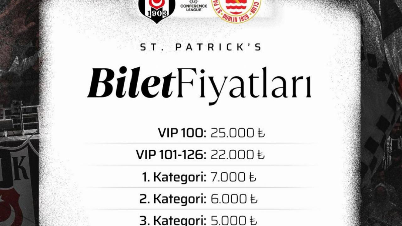 Siyah-beyazlıların, Dolmabahçe'de saat 21.00'de başlayacak St. Patrick's maçı için belirlediği bilet fiyatları şöyle: