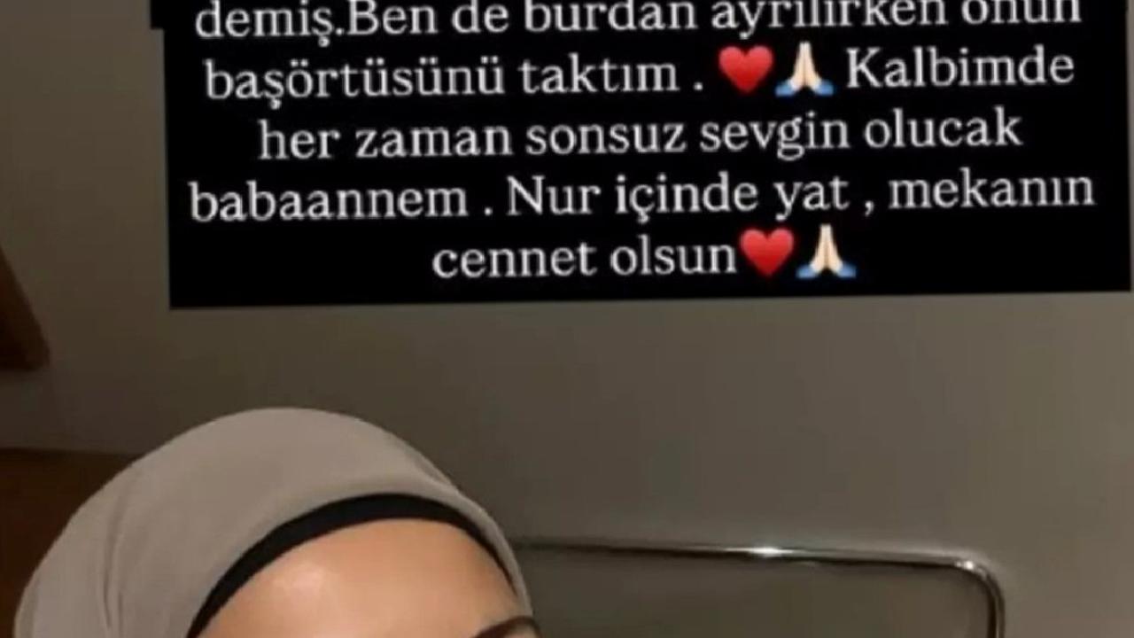 ''Rahmetli babaannem adımı yıllar önce umre ziyaretinde koymuş. Allah'ın izniyle kız olursa adı Tuğba olsun demiş. Ben de burada ayrılırken onun başörtüsünü taktım. Kalbimde her zaman sonsuz sevgin olacak babaannem. Nur içinde yat, mekanın cennet olsun.''
