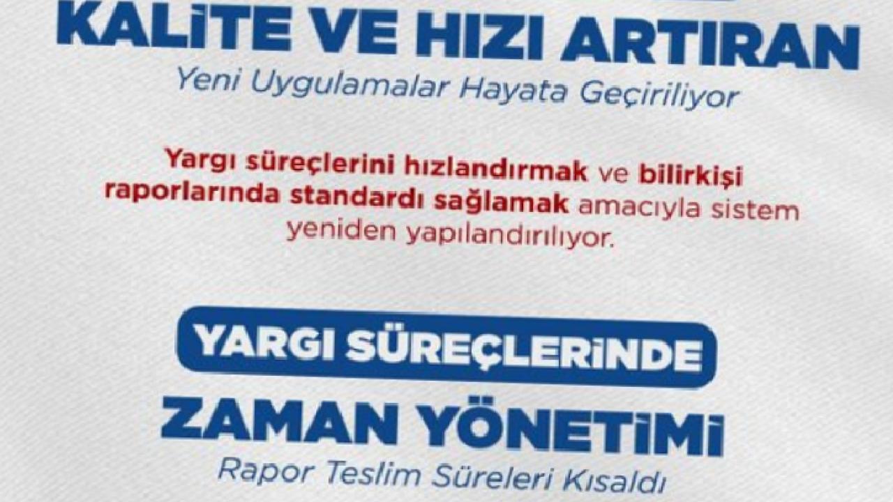 Bakanlık tarafından yapılan düzenlemelerle, rapor teslim kontrolü ve aylık iş sayısı uygulamaları sayesinde, daha önce ortalama 110 gün süren bilirkişi raporlarının süresi 29 güne düşürüldü.