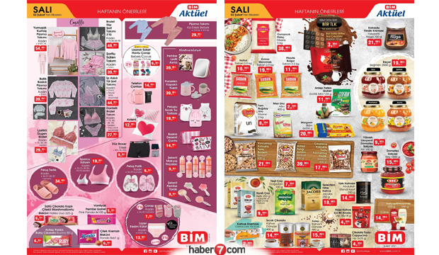 Haftada iki katalog yayınlayan BİM’in birinci katalog eserleri aşikâr oldu. 2 Şubat 2021 tarihinde raflarda yerini alacak olan eserlerin ortasında; Casilli Yumuşak Kumaş Bayan Pijama Kadrosu, Pijama Grubu Kız-Erkek Bebek, Telefon Çantası, Kırlent, Erkek Düz Boxer, Bayan Peluş Terlik, Naturalove Pembe Ledli Ayna, Naturalove Peluşlu Sıcak Su Torbası, Şekerli Makyaj Fırçaları, Porselen Kapaklı Kupa, Fiskobirlik Nuga Kakaolu Fındık Kreması, Calve Ketçap 600 gr + Mayonez 540 gr, Jacobs Selection Filtre Kahve 250 gr, Seç Domates Salçası, Casilli Lastikli Üçgen Bralet, Efsane Osmancık Pirinç 5 Kg, Bayan Peluş Patik ve çok daha fazlası bu Salı BİM’de!